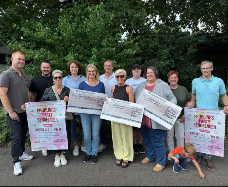 Erstmals haben sich drei Sennelager Vereine – die Schützenbruderschaft St.Hubertus Sennelager, die Senne-Frauen sowie der TUS Sennelager – zusammengetan, um gemeinsam im April eine Frühlingsparty auf die Beine zu stellen. Das Ergebnis war ein voller Erfolg. Aus dem Erlös der Party haben die drei Vereine nun beschlossen, gemeinsam Gutes zu tun.: Jeder der drei ortsansässigen Kindergärten erhielten eine Spende in Höhe von 800 Euro. Die nächste Frühlingsparty findet am 21.03.2026 in der Schützenhalle Sennelager statt. Karten sind erhältlich bei der Postfiliale Voss Sennelager.